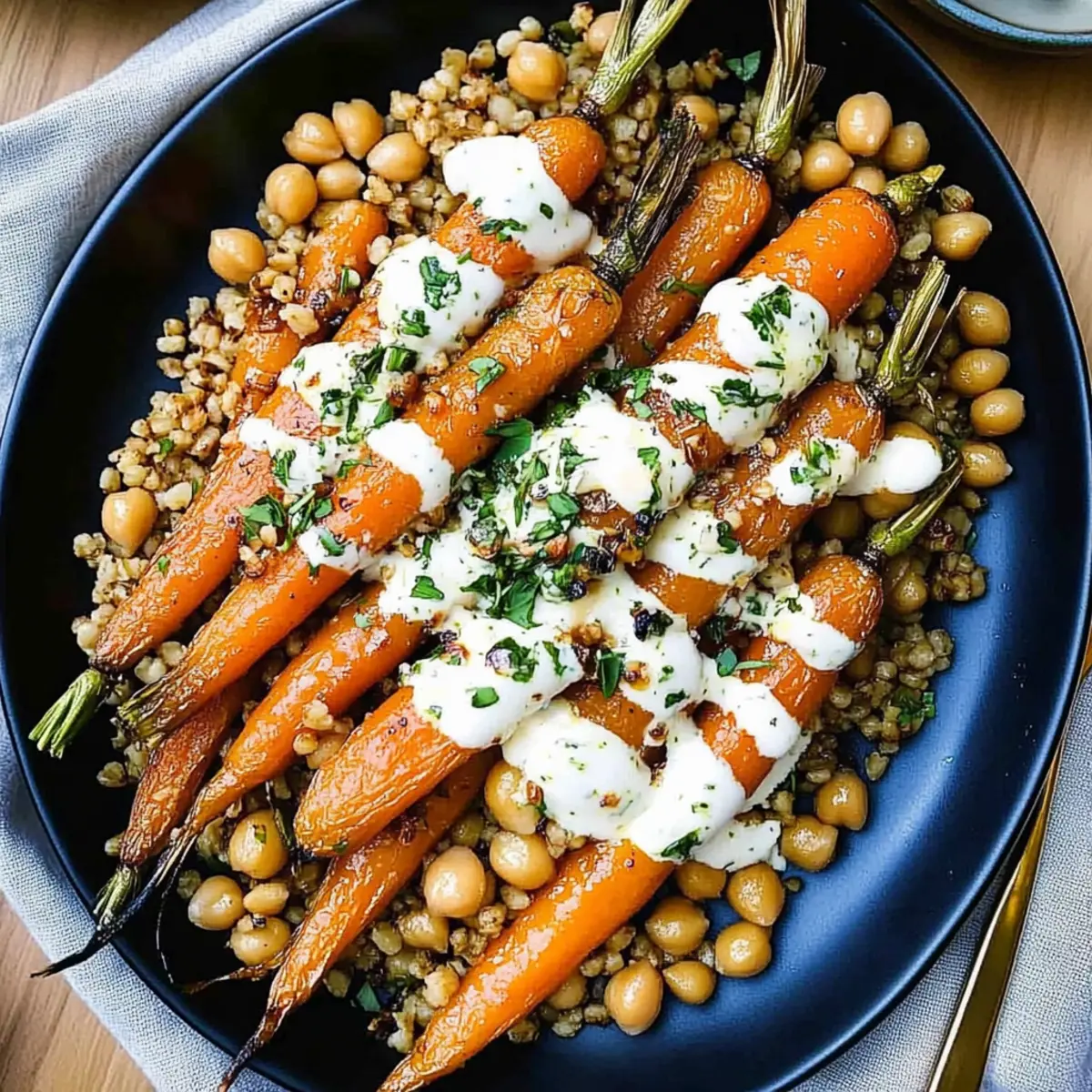 Herbed Quinoa: Light and fluffy quinoa seasoned with fresh herbs can add a nutritious flair while echoing the wholesome elements in the roasted carrots and chickpeas.